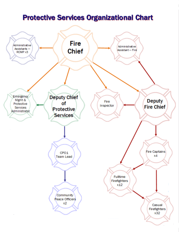 The Town's Fire Department operates with a Chief, Deputy Fire Chief, Deputy Chief of Protective Services, 4 Administrative Assistants, 4 Captains, 12 Full-time firefighters, one part-time Inspector and 32 casual firefighters, providing 24-hour service to the community & surrounding area.