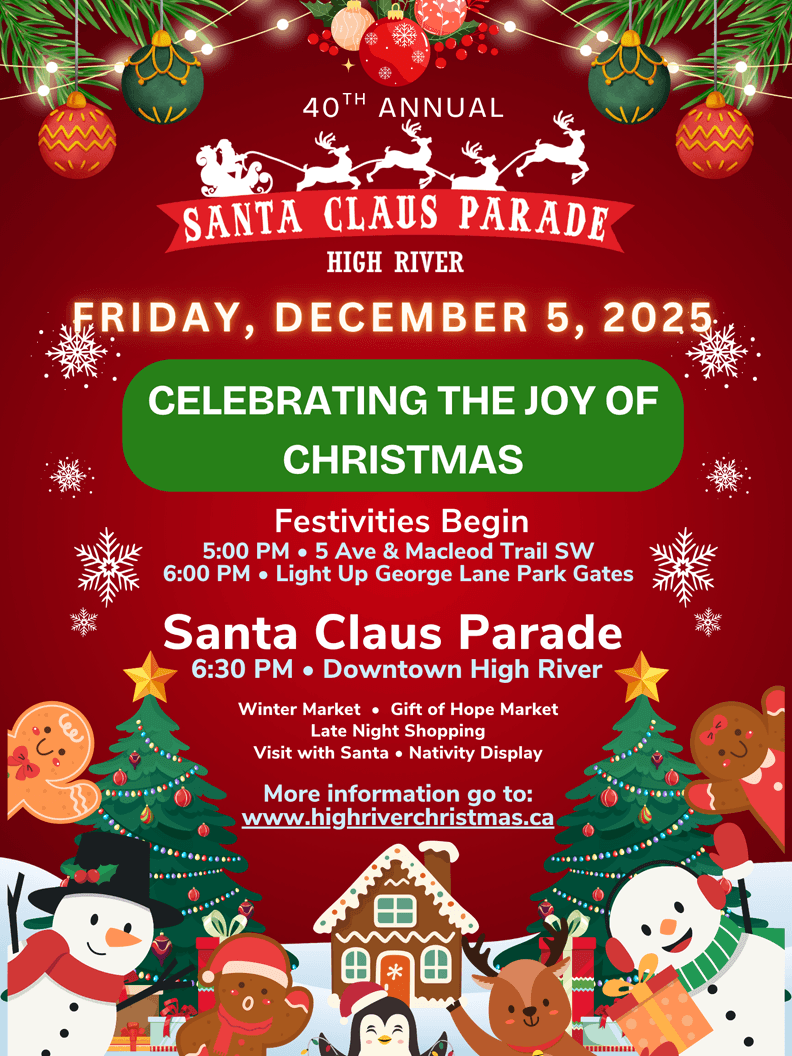Come out and enjoy the fun and festivities! For more information or to enter a float in the Parade, go to: highriverchristmas.ca