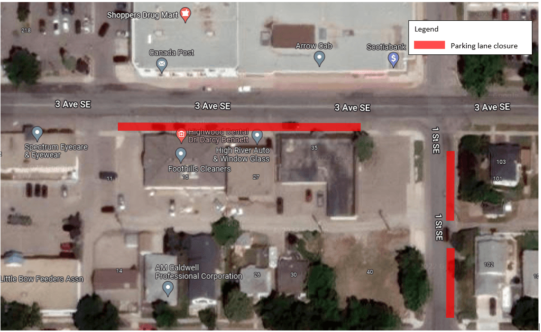 During the completion of this project, parking will be restricted on 3 Ave SE and 1 Street SE. Traffic from all directions will be able to pass the work area during working hours.