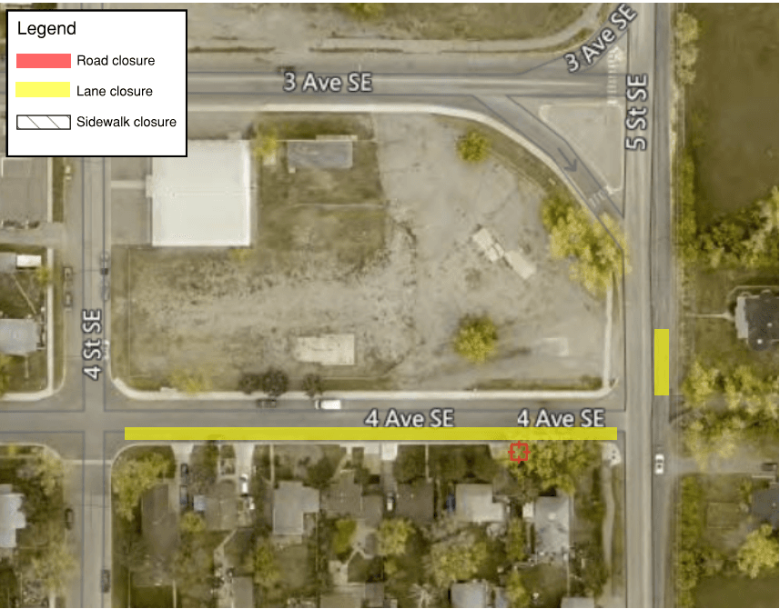 One Lane Closure in Effect on 5 Street and 4 Avenue SE | November 7 & 8