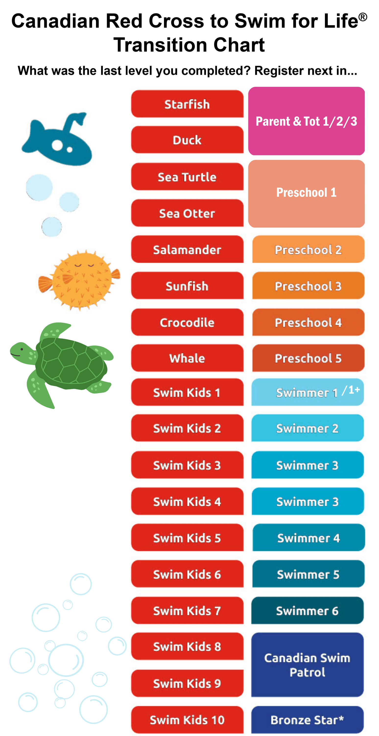 Registration for swim lessons is now open. Caregivers wondering what level of Lifesaving Society swim lesson to enroll their child in can reference the below chart or check the Fall 2022 program guide. A free swim assessment can also be scheduled by contacting the aquatic facility at 403-652-4042. The assessment takes about 5-10 minutes.