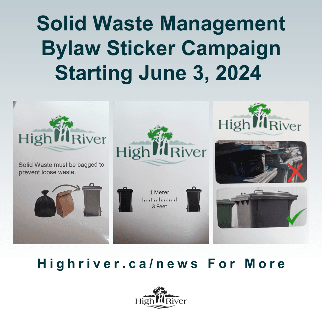 HIGH RIVER – As part of the ongoing implementation of the Solid Waste Management Bylaw, the Town of High River is launching a sticker campaign from June 3 to August 31, 2024. This campaign aims to highlight and educate on potential bylaw infractions that may be subject to fines in 2025.