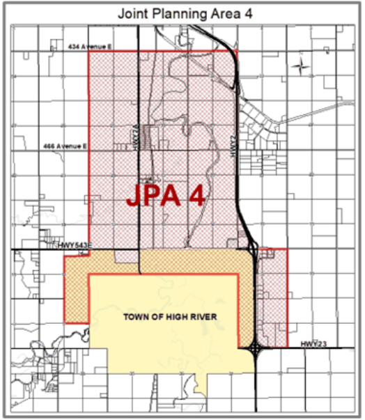 - The JPA 4 area extends along Highway 2A from 434 Avenue on the north to approximately one-half mile inside the Town of High River boundary.