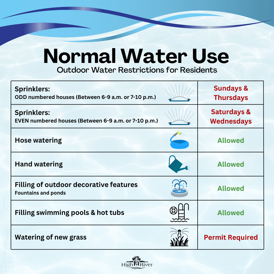 The Outdoor Water Use and Restriction Bylaw reflects a ‘new normal’ for High River’s water use and restrictions, to ensure we build resilience to the impacts of the changing climate.